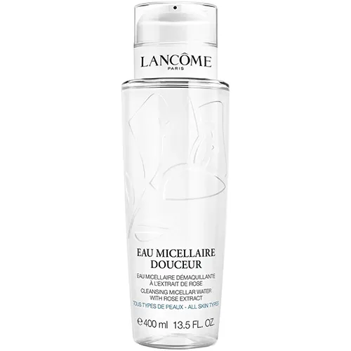 Lancome Eau Micellaire Douceur is a transparent water solution that gently liberates the skin from impurities. The micellaire technology allows perfect make-up removal with optimal tolerance in a burst of freshness. Its gentle formula can be used to remove eye and lip makeup. Eau Micellaire Douceur contains ingredients of naturally derived origin such as White Lotus, Rose de France and Japanese Cedar bud. The formula hydrates the skin for a comfortable and non-drying cleansing experience. Suitable for all skin types.