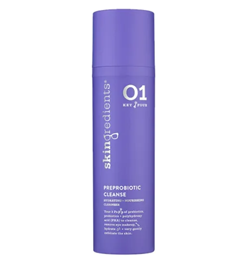 Skingredients 01 Preprobiotic Cleanse is a hydrating and nourishing cleanser. This PreProbiotic Cleanse is all about the 3 ps: prebiotics, probiotics and polyhydroxy acid. Prebiotics and probiotics are the ultimate balancers and trust us, it is all about keeping your skin’s microbiome, its defence force of bacteria, balanced. PrePro cleanses, revitalises and gently exfoliates the skin for plumpness, softness and hydration. It’s a featherweight, non-greasy yet hydrating lotion with the muscle to remove oil, pollution particles, and makeup, including eye makeup. Even though PreProbiotic gets stuff done, it’s a big softy, so you can use it AM + PM. Non-comedogenic, making it suitable for even the oily and congestion-prone skin, and yet nourishing enough for the driest of dry skin. It can be used as a soothing, comforting mask too!
