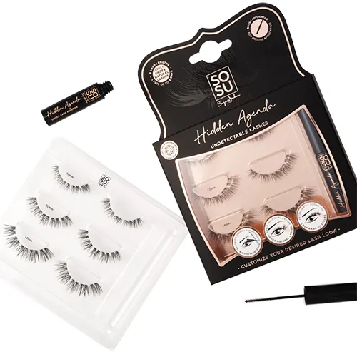 SOSU Hidden Agenda Lashes are specially designed for lash application underneath the natural lash line to create an undetectable finish. These double lash clusters are super lightweight and allow complete customisation.